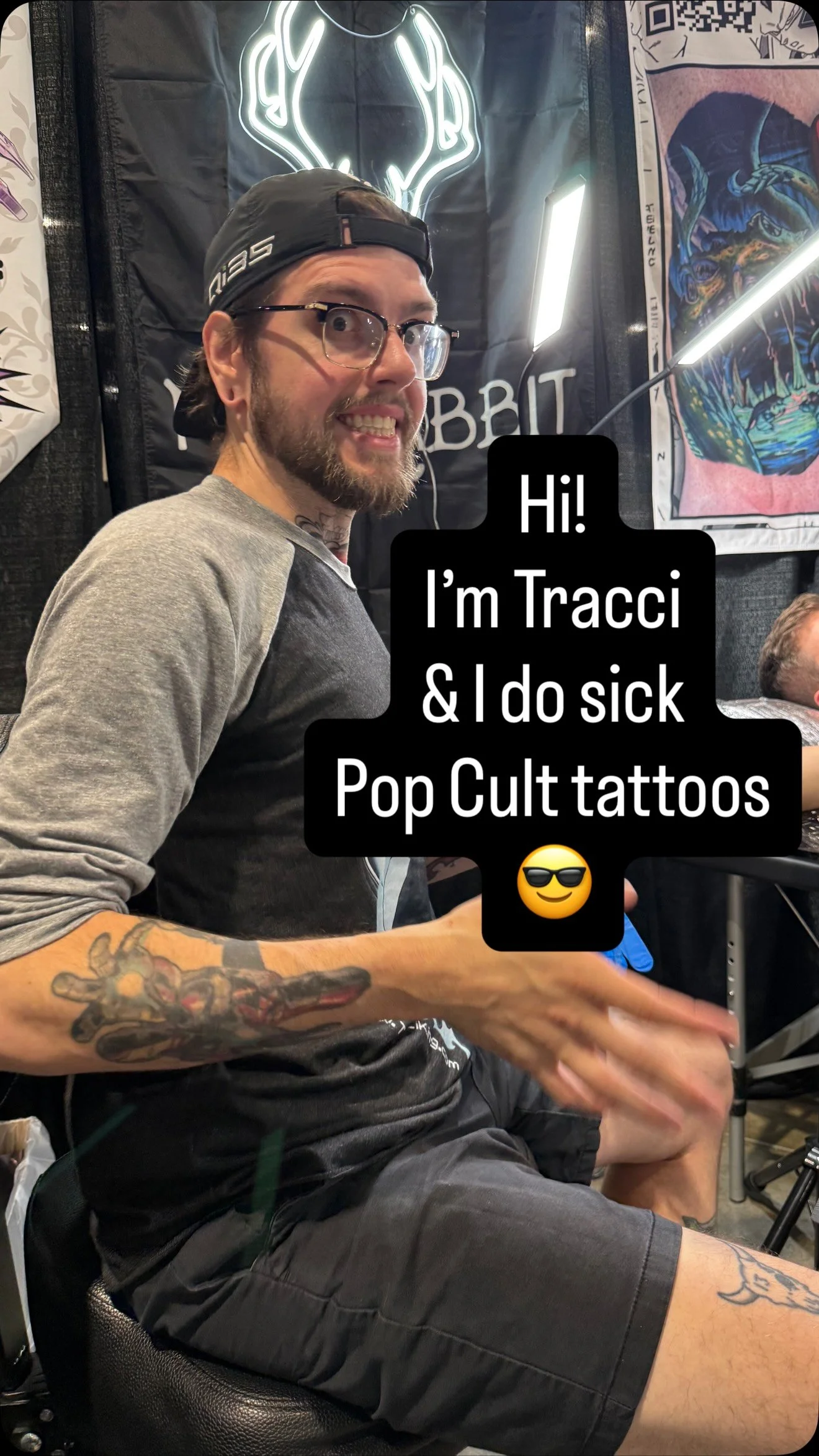 You can find me at The Raven & Rhino in Toledo, Ohio, or catch me at tattoo conventions across the country. I'm always down to take on fun, challenging projects — especially if it’s fandom-related.